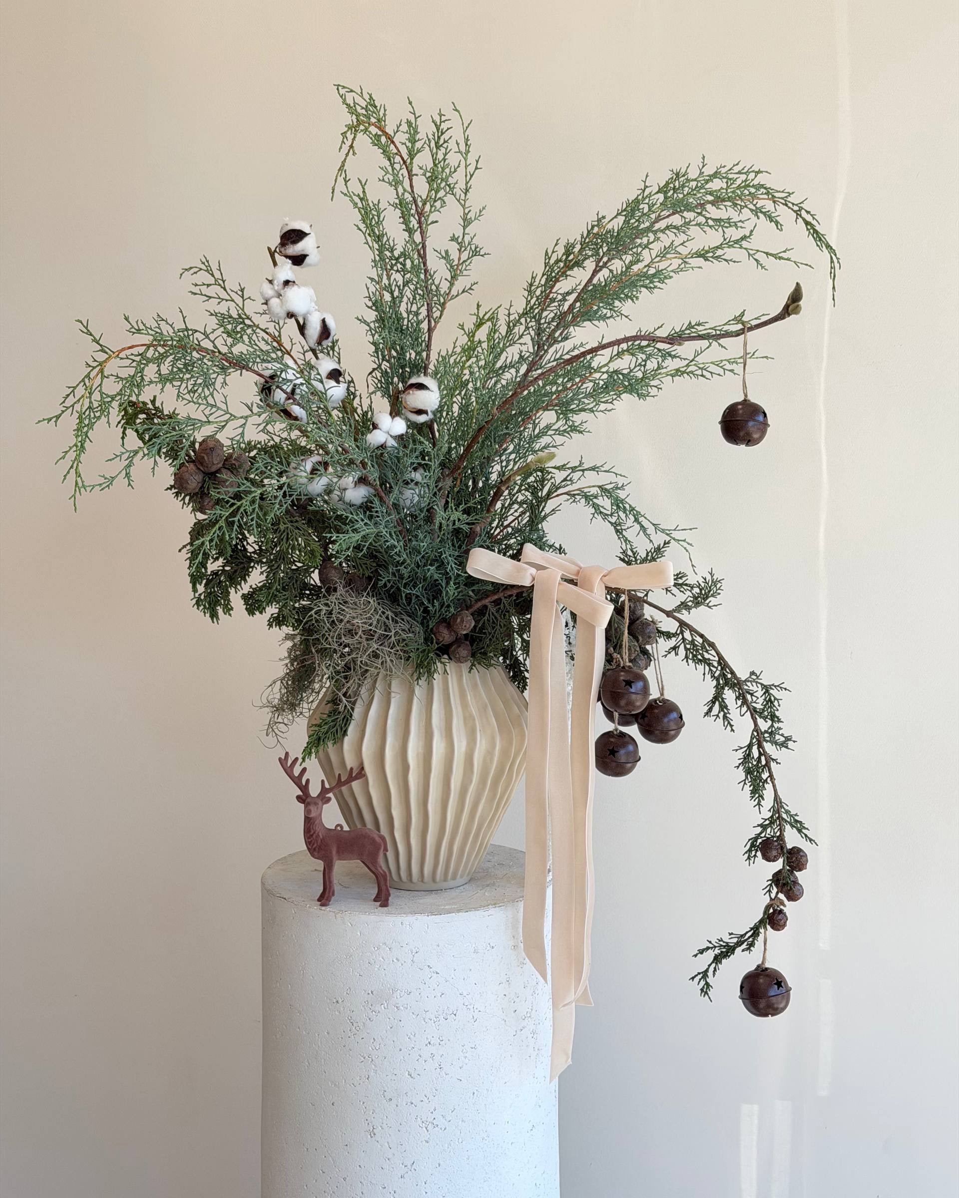 Winter Sky captures the serene beauty of frost-laden mornings and crystalline skies. This piece showcases delicate layers of cool-toned florals—silvery whites, icy blues, and soft grays—arranged to evoke the quiet majesty of a winter landscape. Each bloom is thoughtfully selected for its texture and subtle color gradations, creating depth and visual interest. Perfect for adding sophisticated elegance to any space, Winter Sky brings the tranquility of the season indoors while maintaining a refined, gallery-quality aesthetic.